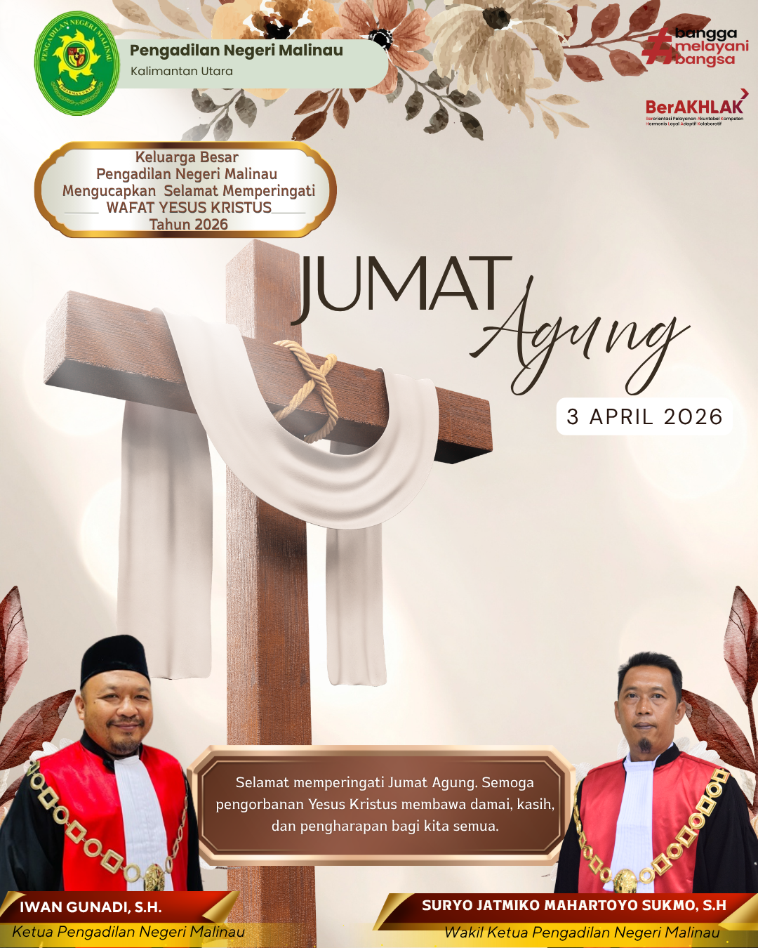 Harapan kami, semangat Jumat Agung dapat mempererat persaudaraan, menumbuhkan kepedulian, serta mendorong kita untuk terus memberikan pelayanan terbaik bagi masyarakat, demi terwujudnya keadilan yang bermartabat.